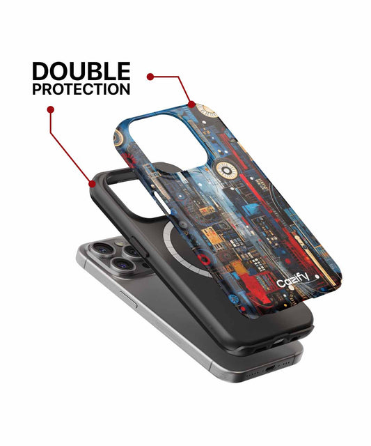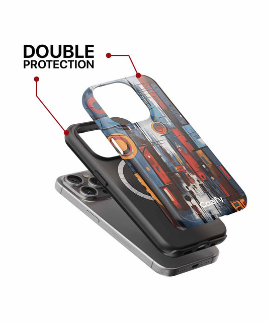 Vibrant Cityscape with Cosmic Whimsy iPhone case