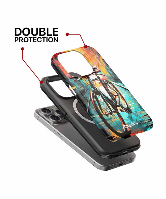 Vibrant Bicycle Journey on Colorful Streets iPhone case