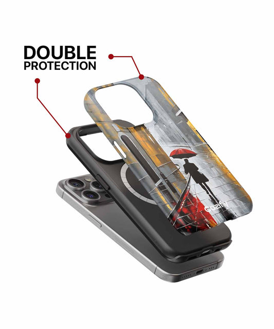 Charming Rainy Day Stroll with Red Umbrella iPhone case
