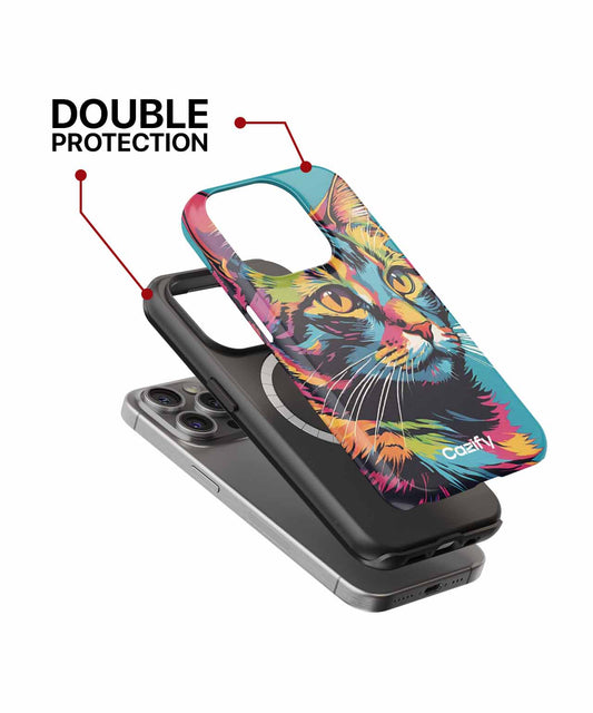Vibrantly Colorful Whiskered Cat Delight iPhone case