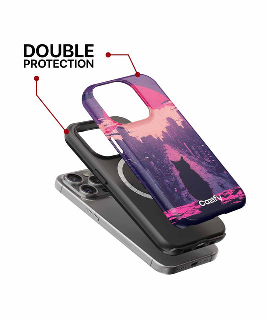 Pensive Cat Staring at a Neon Sunset iPhone case