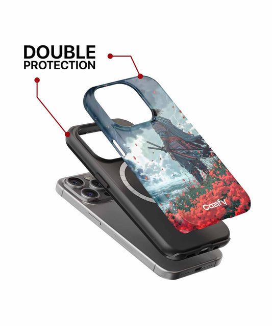 Melancholic Warrior in Stormy Blooms iPhone case