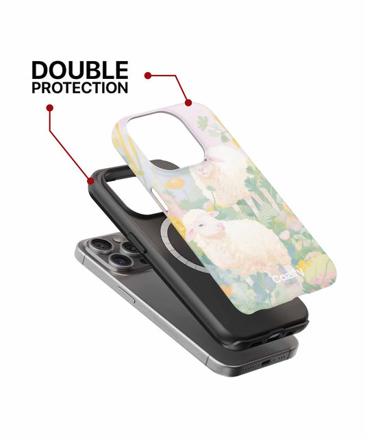 Fluffy Sheep frolicking in a Floral Paradise iPhone case
