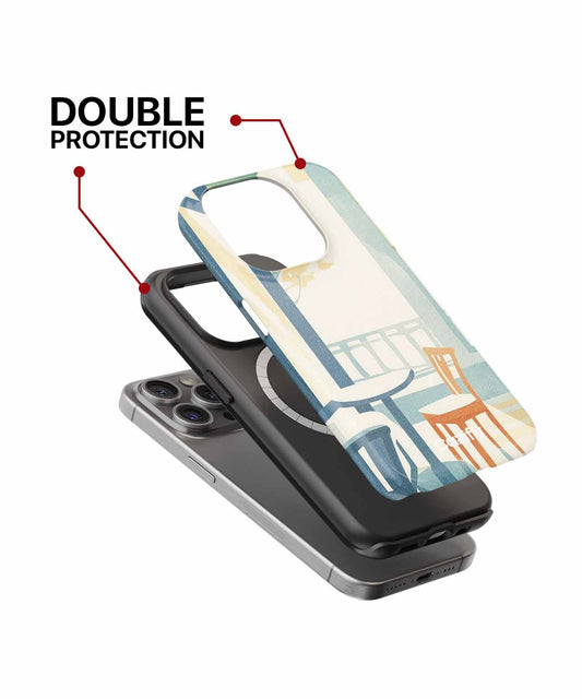 Cozy cafe vibe with bright chairs iPhone case