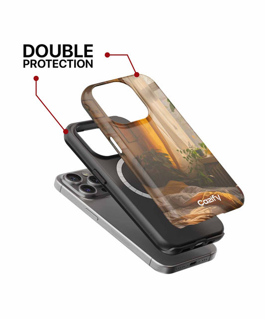 Cozy Sunlit Bedroom Oasis iPhone case