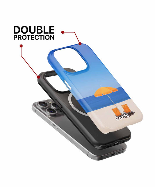 Sunny Beach Relaxation with Orange Umbrella iPhone case