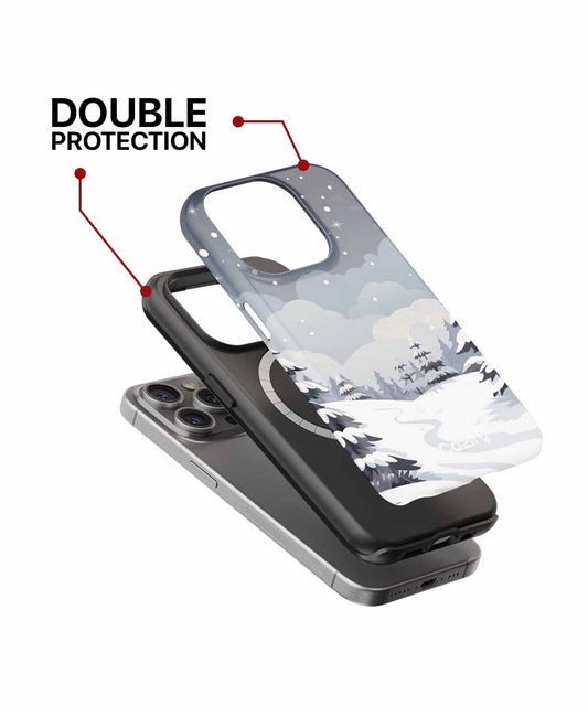 Snowy Mountain Adventure with Pine Trees iPhone case