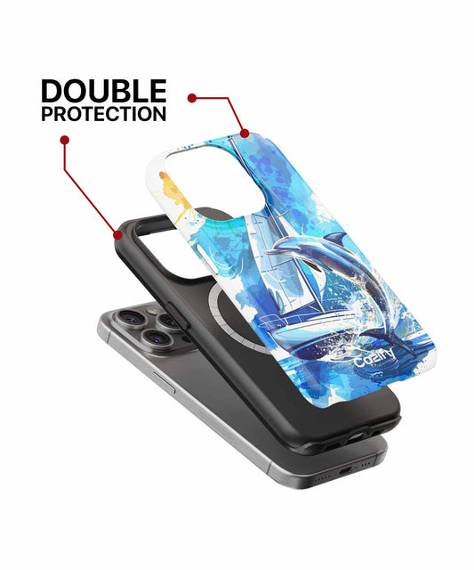 Splashing Dolphin Joyride on a Sailboat iPhone case