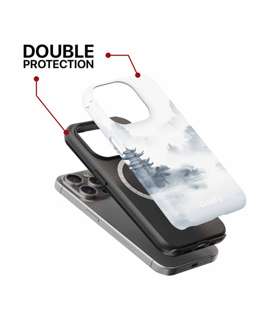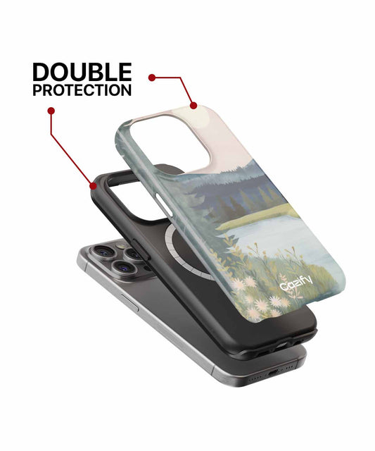 Serene Canoeing Adventure with Majestic Mountains iPhone case