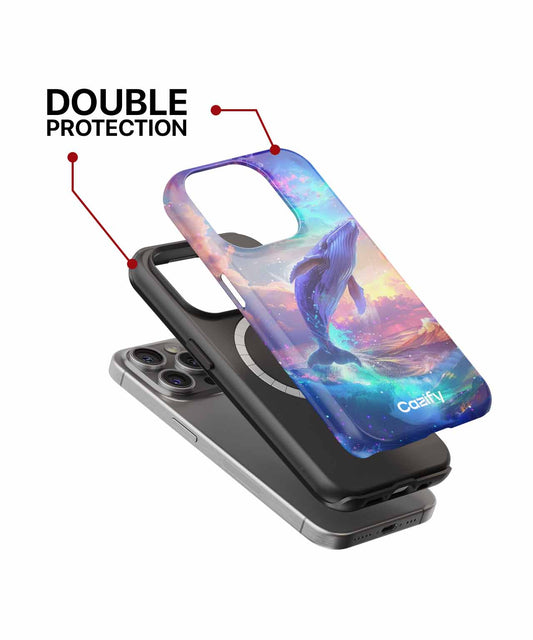 Majestic Whale Leaping Through Colorful Cosmos iPhone case