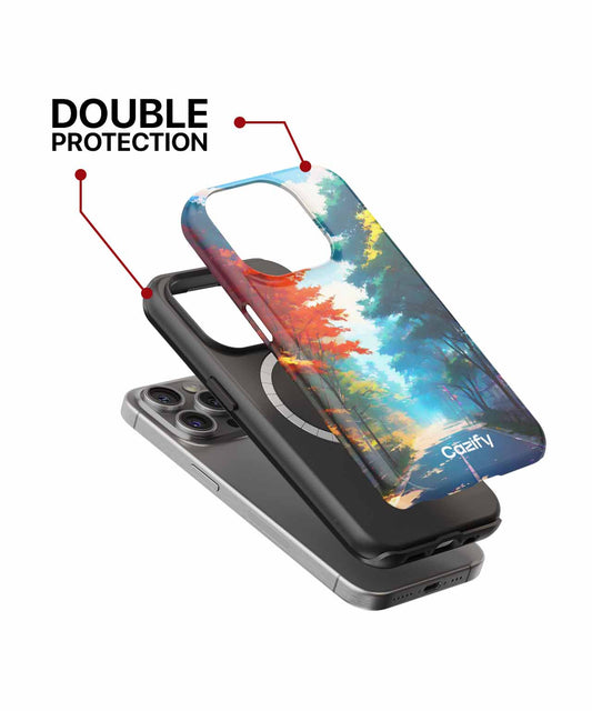 Charming Autumn Stroll with Colorful Umbrellas iPhone case