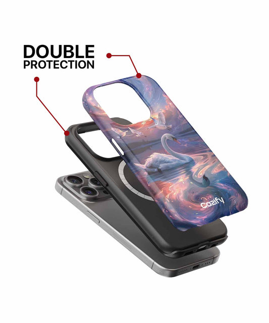 Elegant Swans Dancing in Cosmic Waters iPhone case