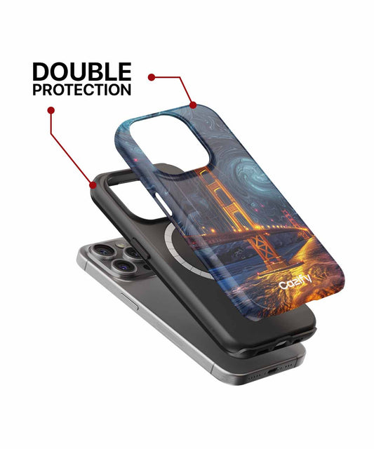 Golden Gate Bridge Under Cosmic Swirls iPhone case