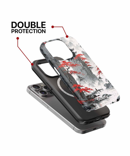 Tranquil Mountain Retreat with Red Foliage iPhone case