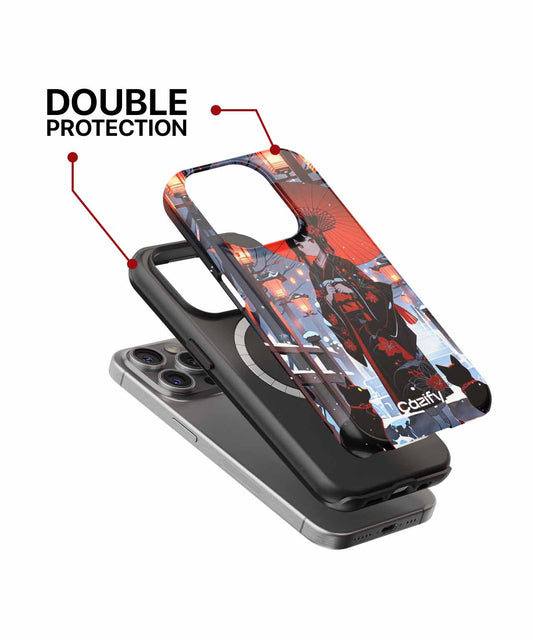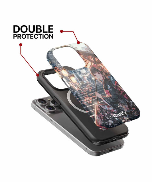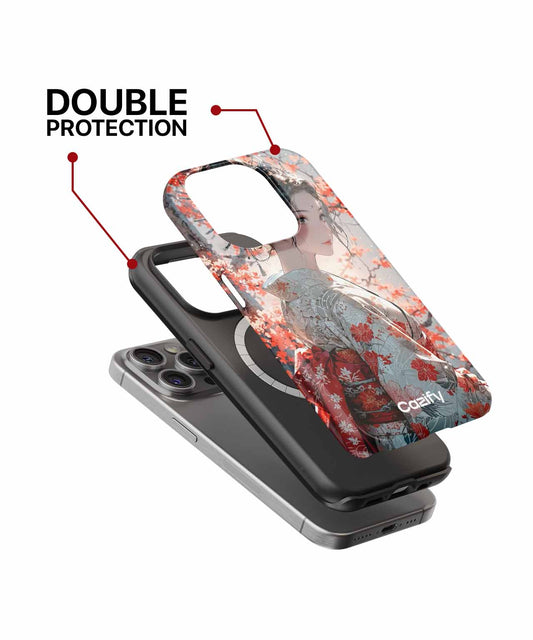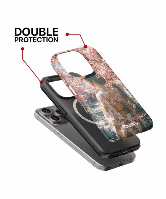 Elegant Cherry Blossom Stroll in Kimono iPhone case