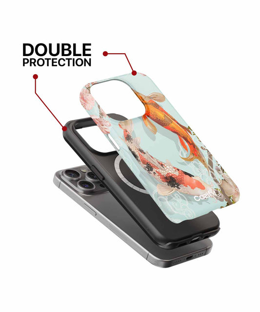 Elegant Koi Fish Dance Among Blooms iPhone case