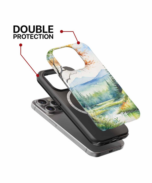 Breathtaking Watercolor Mountain Reflection iPhone case