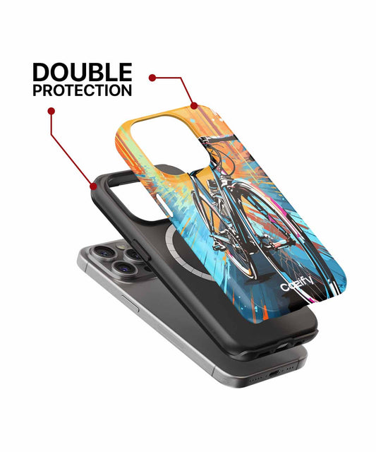 Speedy Cyclist on a Colorful Adventure iPhone case