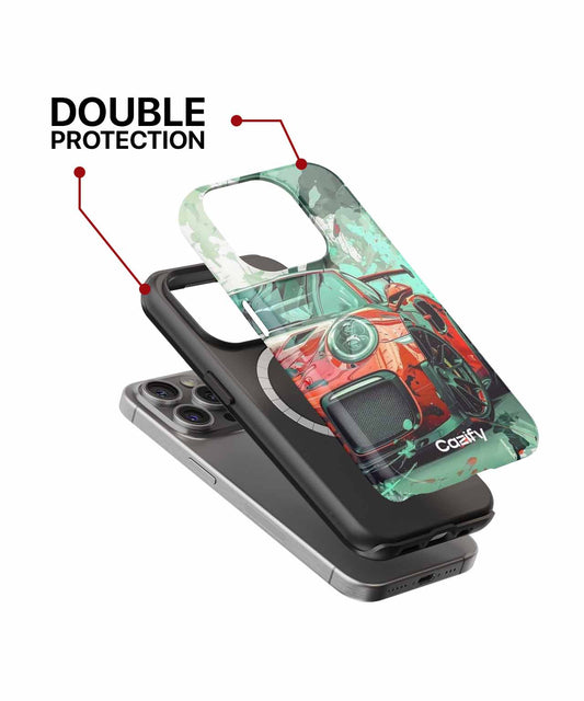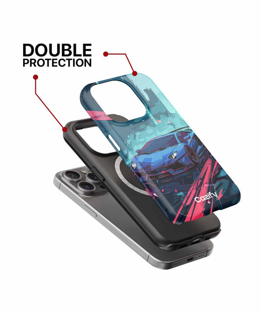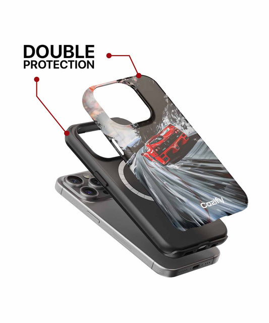 Speedy Raindrop Racer in Neon Wonderland iPhone case