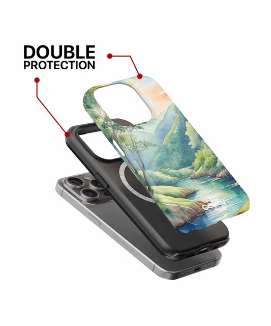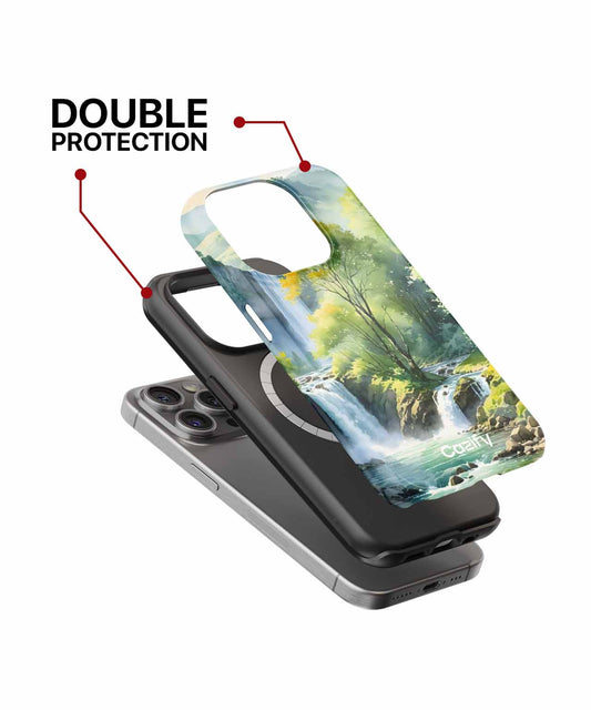 Serene Waterfall Wonderland with Green Haven iPhone case