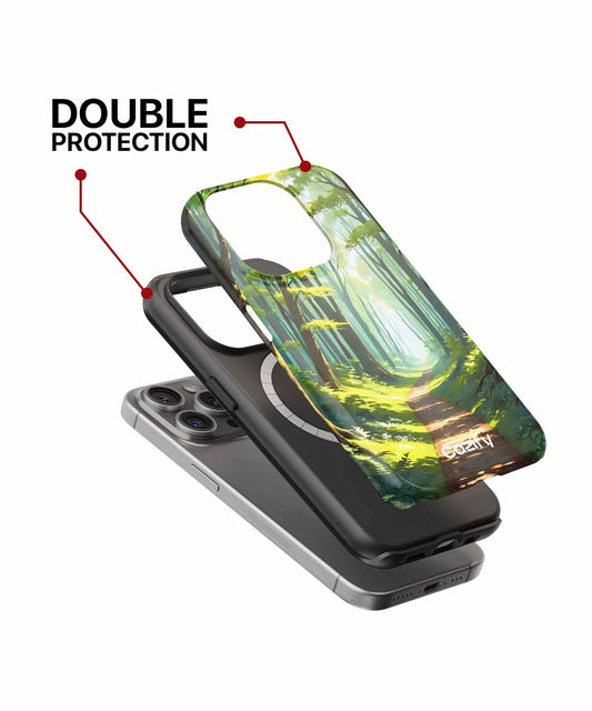 Sunlit Pathway Through Lush Forest iPhone case