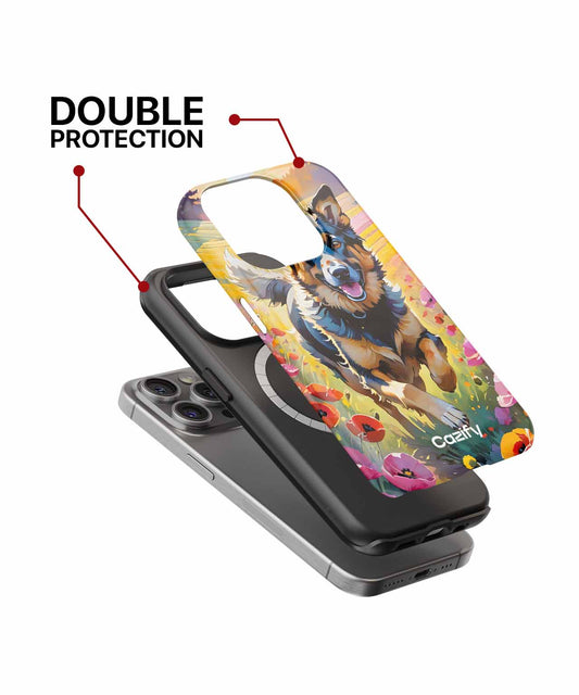 Joyful Bulldog Frolicking in Poppy Fields iPhone case