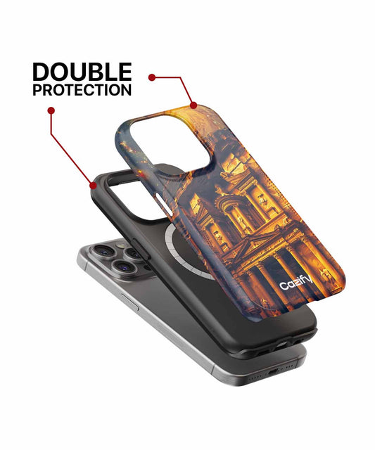 Majestic Ancient City Meets Cosmic Wonder iPhone case