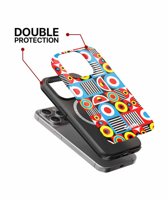 Colorful Retro Fun with Circles and Stripes iPhone case