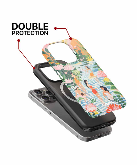 Blissful Ladies in a Vibrant Oasis iPhone case