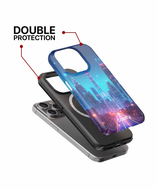 Neon Dreams of a Futuristic City iPhone case
