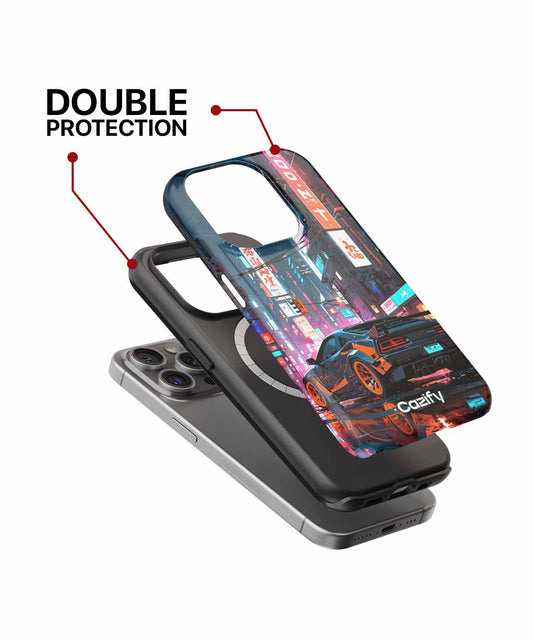 Neon Lights and Shadowy Streets iPhone case