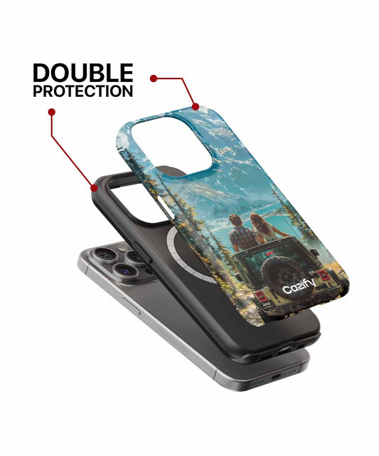 Étui pour iPhone Étreinte des Amoureux au Cours d'une Aventure en Jeep