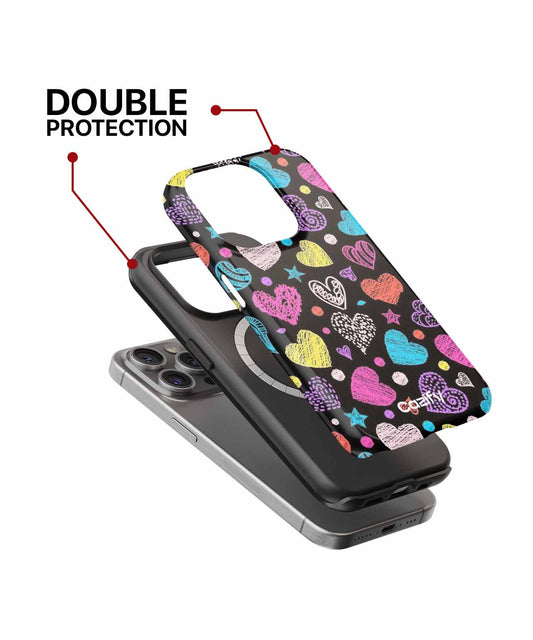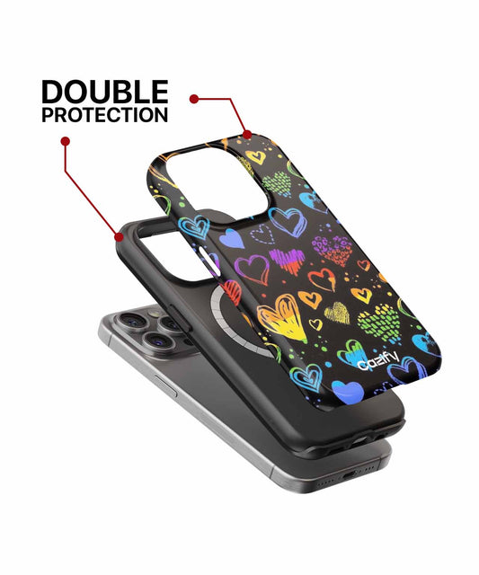 Étui pour iPhone Cœurs Colorés en Fête sur Fond Sombre